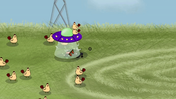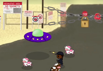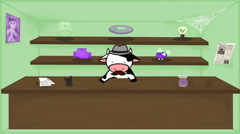 In mOOving up, the player acts as a deployed UFO pilot sent to Earth by a mysterious entity known as Madame Bessy. Exploring a series of increasingly hazardous regions, the pilot is tasked with retrieving Madame Bessy's fashion items and collecting as many cows as possible to bring back to their home planet.